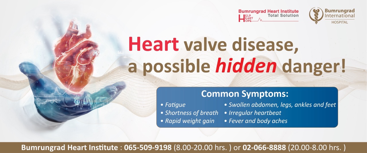 There are many ways to treat heart valve disease. Currently, Bumrungrad Hospital has the technology for heart valve replacement without surgery, offering good results and highly safe.