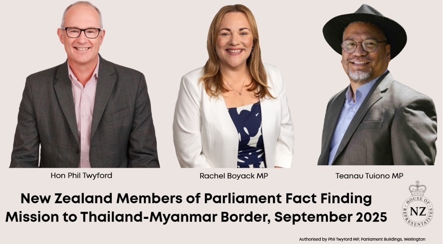 Join an important panel discussion and Q&A with New Zealand MPs Phil Twyford, Rachel Boyack and Teanau Tuiono at the conclusion of their 9-day fact finding mission to the Thailand-Myanmar border.